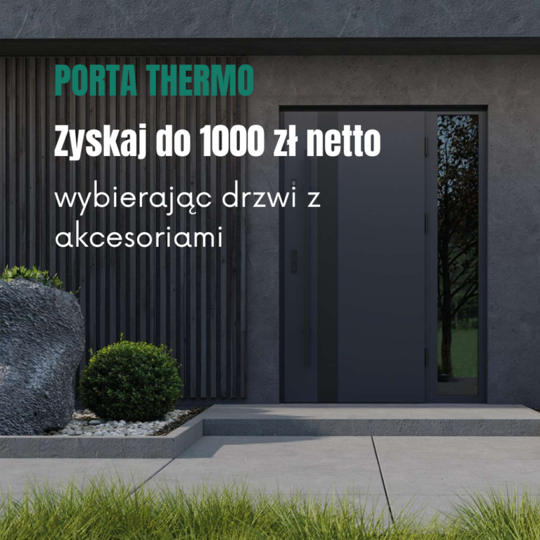 Skorzystaj z promocji PAKIET KORZYŚCI PORTA “Zyskaj więcej na wejściu”. Kup drzwi zewnętrznych PORTA THERMO w specjalnych pakietach OPTIMUM i/lub OPTIMUM ENERGY (z wyłączeniem modeli: R.1-R.6, C.1, C.2, C.4, M.4) wyposażone w pochwyt prostokątny z